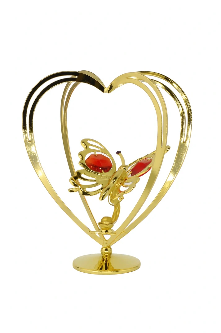 Verguld Hart met Vlinder en Kristal – Luxe Cadeau Beeldje