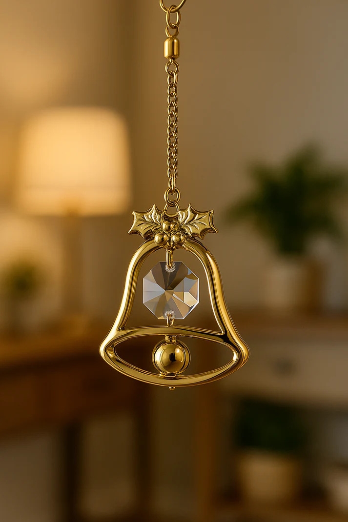 24K Vergulde Kerstklok met Bohemia-kristal – inclusief zuignap