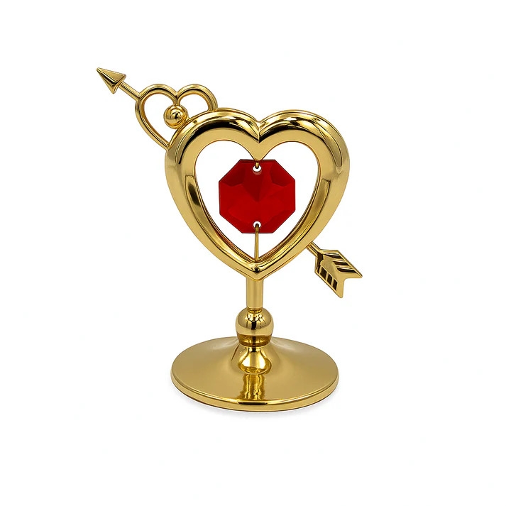 Dit schattige 24K vergulde hartje is geraakt door Cupido’s pijl en schittert dankzij de dieprode Bohemia-kristal in het midden. Een klein kunstwerkje vol romantiek ✨