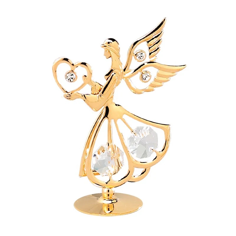 24k goud verguld heilige engel met hart en met helder Bohemia kristal