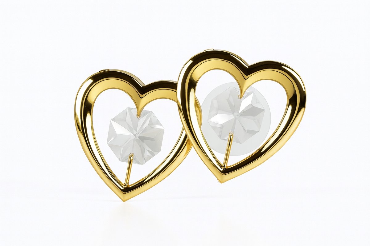 Voeg een romantische en elegante touch toe aan elke ruimte met dit 24 karaat vergulde Dubbel Hart Ornament, schitterend afgewerkt met twee fonkelende kristallen. De harten symboliseren liefde, verbondenheid en warmte — een prachtig cadeau voor jezelf of iemand die je dierbaar is.