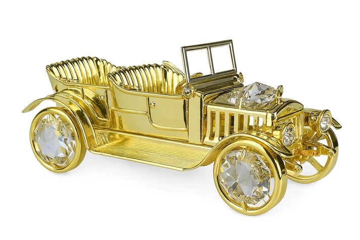 Een waar kunstwerk: deze ingewikkelde oldtimer is verguld met 24-karaats goud en verfraaid met prachtige Bohemia-kristallen. De elegante lijnen en het nostalgische ontwerp brengen de charme van de vroege 20e eeuw tot leven. Een prachtig detail voor liefhebbers van klassieke auto's én luxe decoratie.