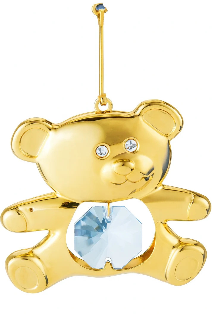 Een schattig verguld beertje, schitterend afgewerkt met een helderblauw Swarovski®-kristal in het hart van zijn buikje. Dit beeldje combineert speelsheid met elegantie en is een prachtig symbool van liefde, vreugde en zachtheid.