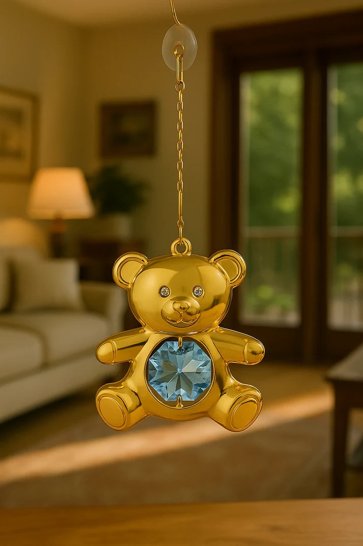 Suncatcher-effect: Hang het beertje voor een raam en laat het zonlicht dansen door het kristal – je interieur wordt gevuld met zachte, sprankelende lichtreflecties.
