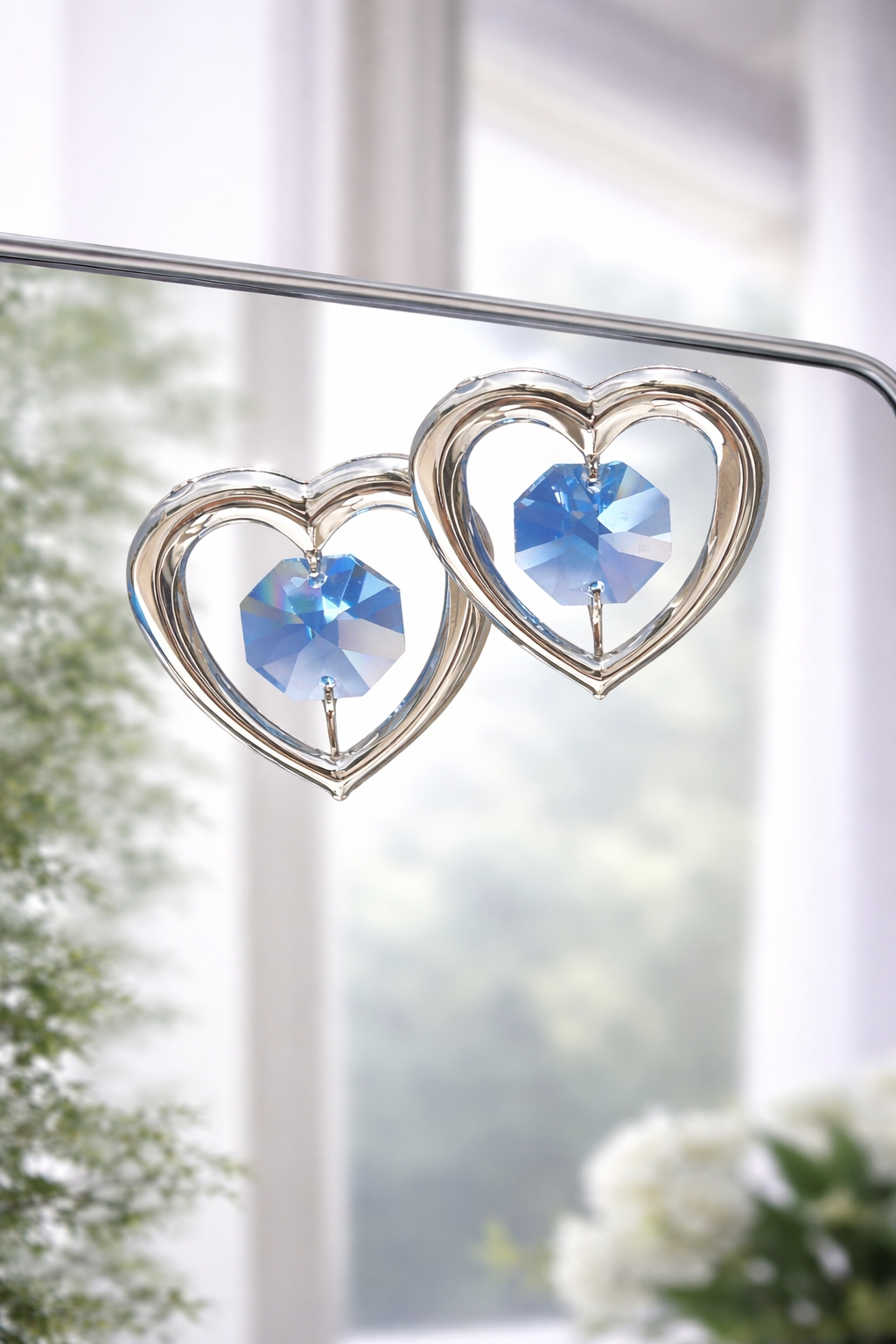 De twee harten symboliseren verbondenheid en liefde, terwijl de fonkelende kristallen zorgen voor een luxe en romantische uitstraling. Wanneer het licht erop valt, ontstaat een subtiel schitterend effect dat direct de aandacht trekt.