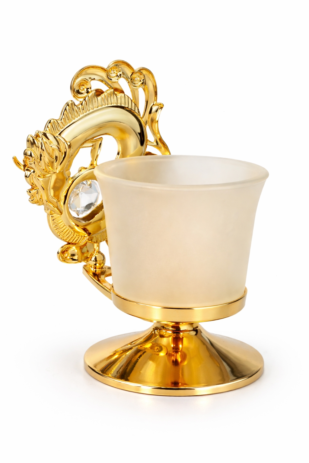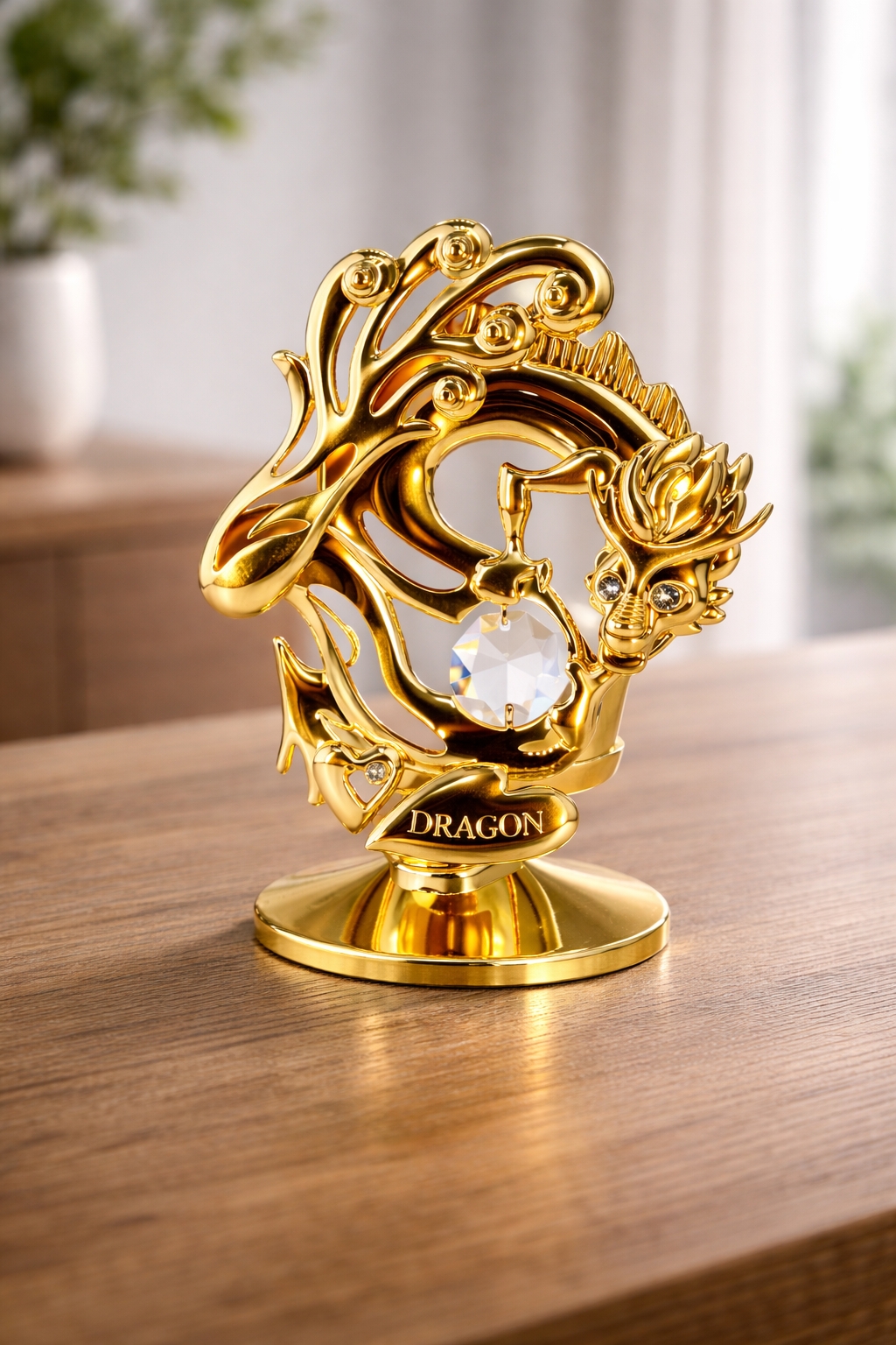 Geef je interieur een luxe en mystieke uitstraling met deze prachtige 24 karaat vergulde draak waxinelichthouder. Het sierlijke ontwerp van de draak, gecombineerd met een subtiel glanzend kristal, maakt dit een echte eyecatcher in elke ruimte.