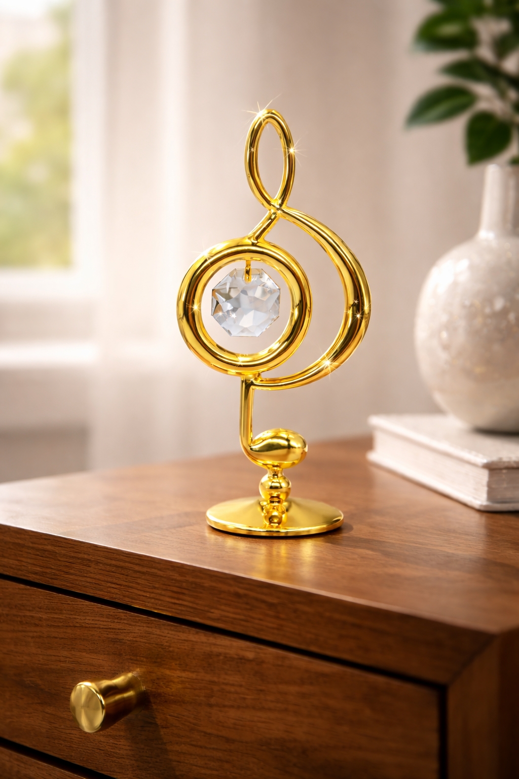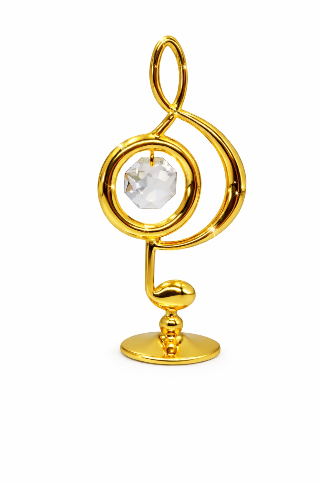 Breng sfeer en elegantie in huis met deze prachtige muzieknoot, afgewerkt met een schitterend helder kristal. Dit verfijnde decoratiestuk is 24-karaats verguld en straalt luxe en klasse uit – perfect voor muziekliefhebbers of als bijzonder cadeau.