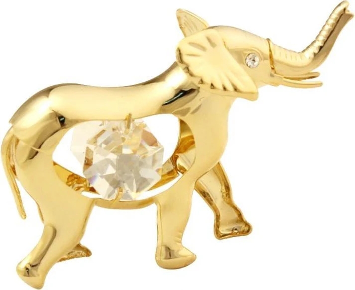 Een charmant verguld olifant-beeldje, verfijnd afgewerkt met een schitterend Swarovski® kristal in het lichaam. Dit sierlijke beeldje straalt kracht, geluk en elegantie uit – perfect als cadeau of luxe decoratie.