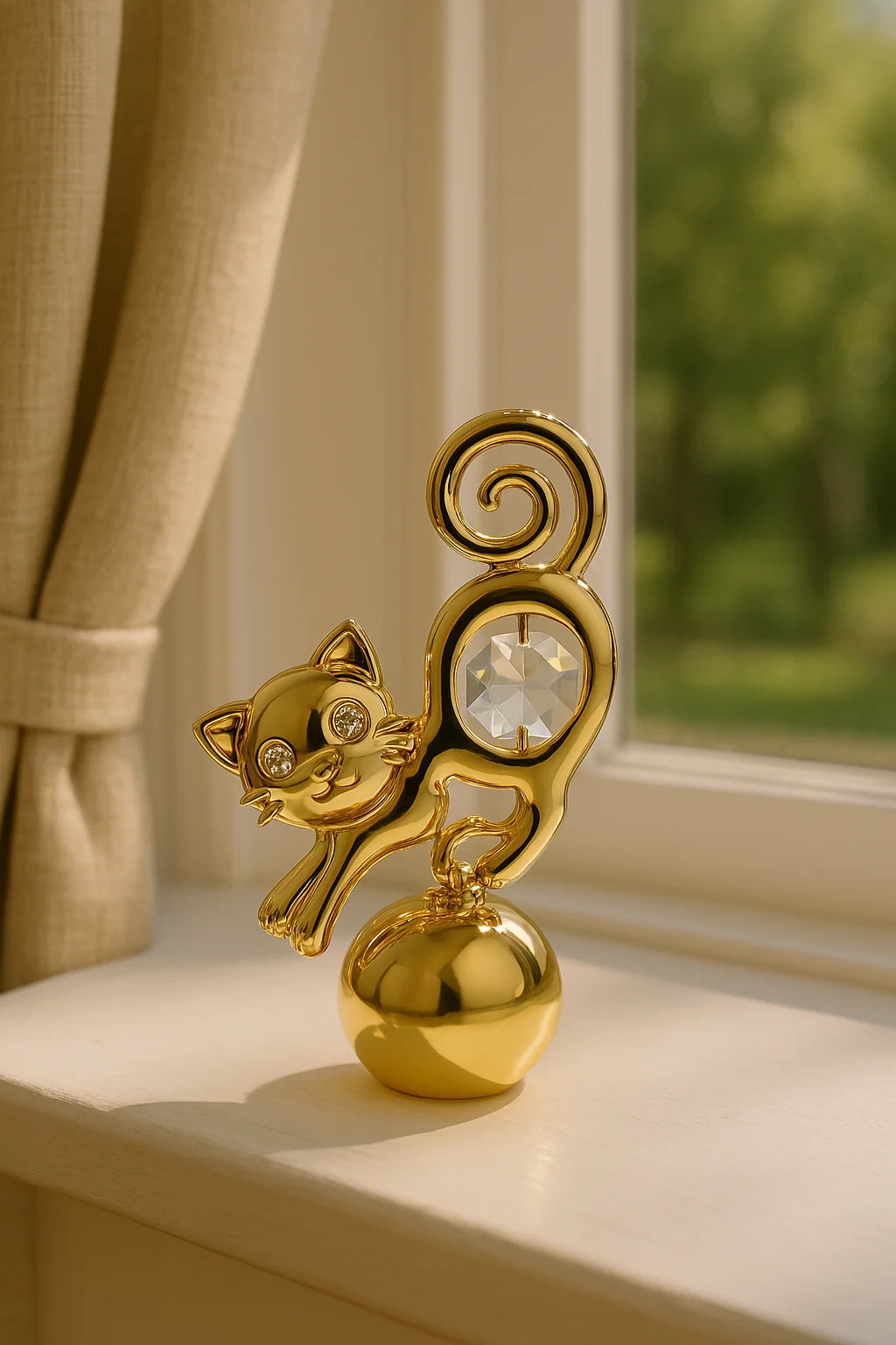 Verguld Kattenbeeldje met Kristal & Fotohouder – 24K goud